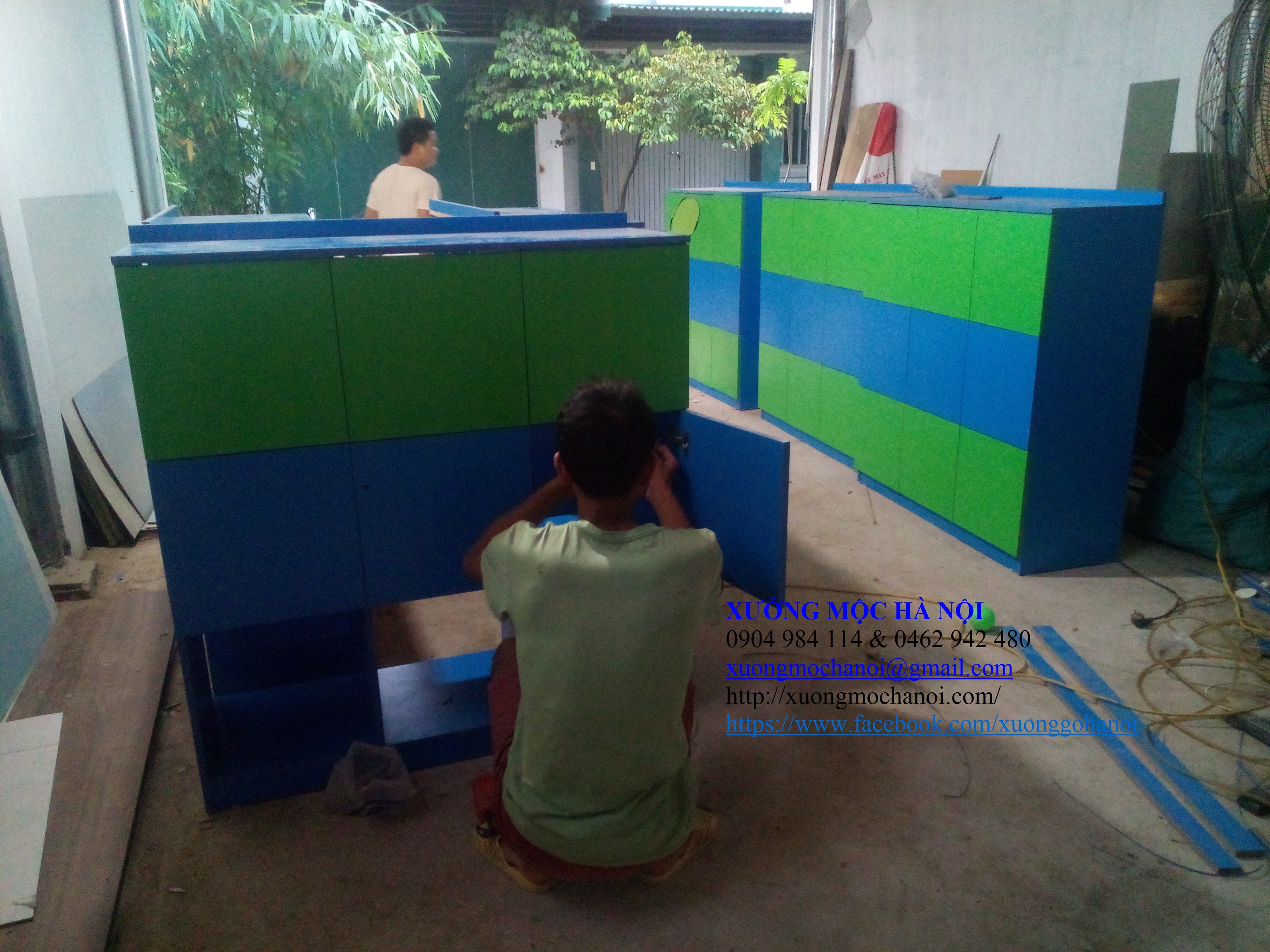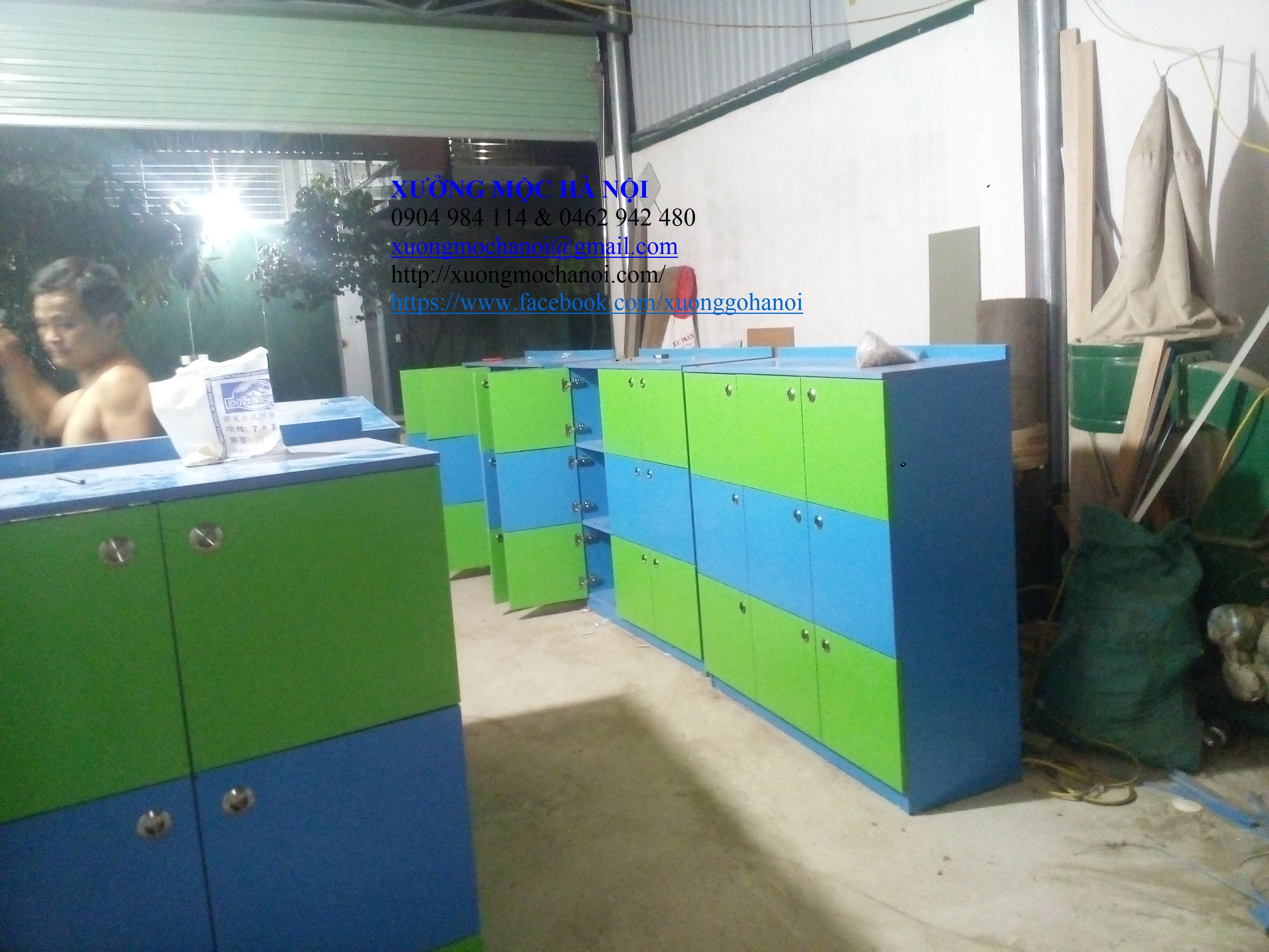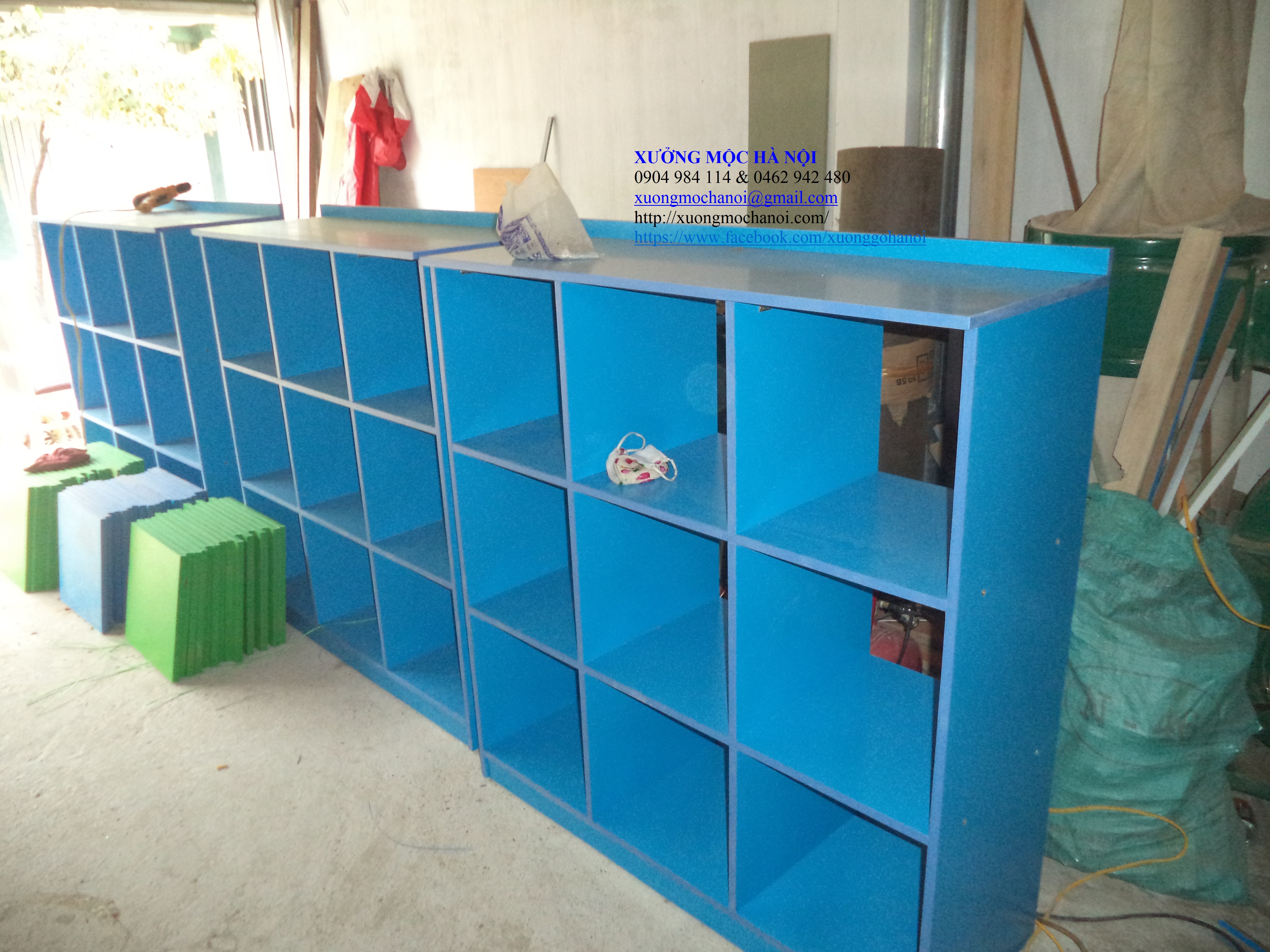 Xưởng mộc Hà Nội thi công kệ để đồ cho học sinh.